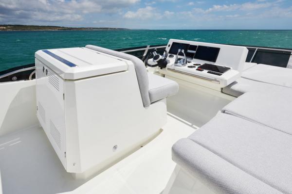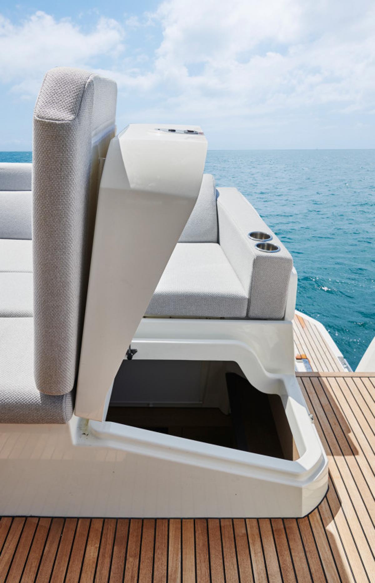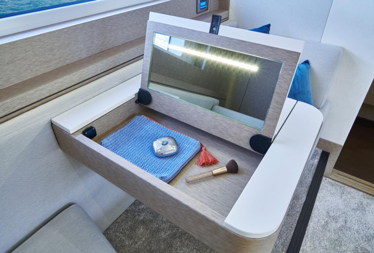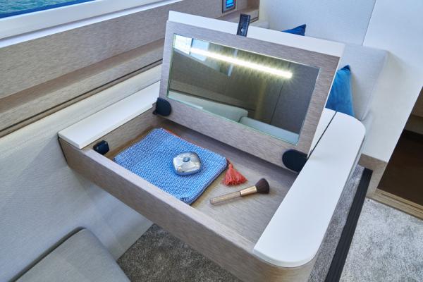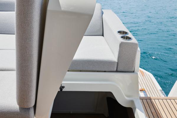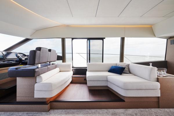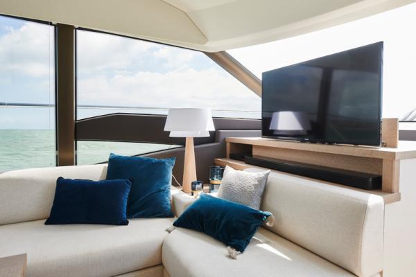 Důraz na detail je tím, co odlišuje PRESTIGE 590 od ostatních plavidel této kategorie. Zaoblené hrany nábytku přispívají k útulné a pohodlné atmosféře obývacího prostoru, který je protkán vytříbenou elegancí.