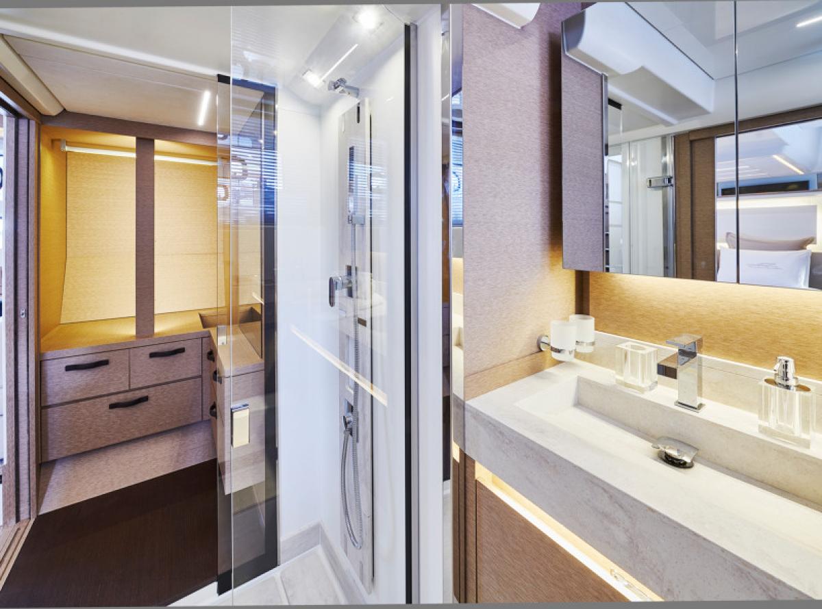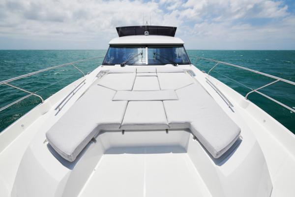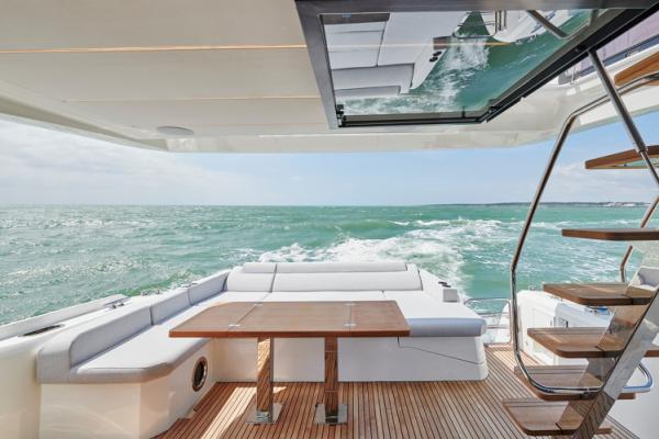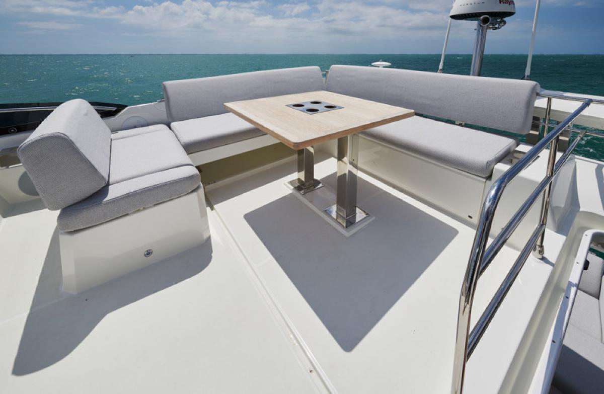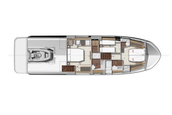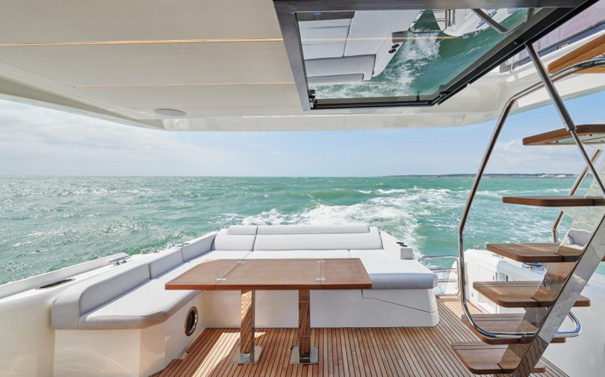 Důraz na detail je tím, co odlišuje PRESTIGE 590 od ostatních plavidel této kategorie. Zaoblené hrany nábytku přispívají k útulné a pohodlné atmosféře obývacího prostoru, který je protkán vytříbenou elegancí.